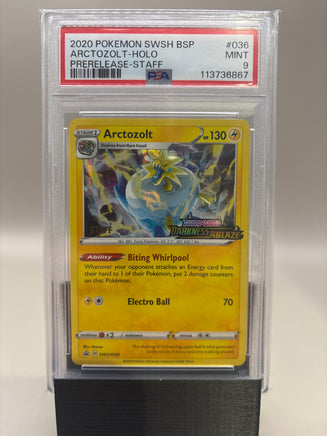 PSA 9 Mint - Arctozolt - Holo #036 Pokemon STAFF Darkness Ablaze Prerelease Promo, Graded