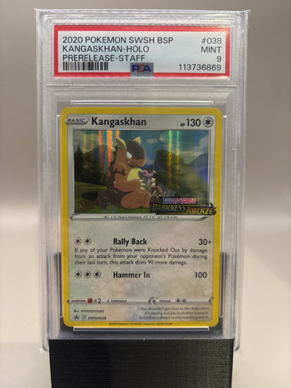 PSA 9 Mint - Kangaskhan - Holo #038 Pokemon STAFF Darkness Ablaze Prerelease Promo, Graded